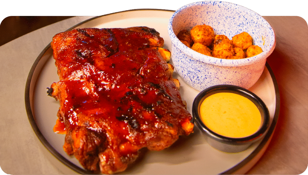 500 gr de jugosa costilla San Luis en salsa BBQ de tamarindo + 1 Guarnición.